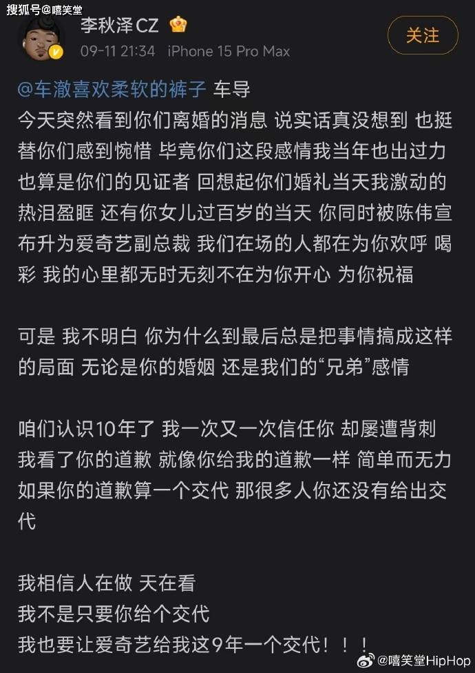 众所周知,在这段时间里,李秋泽一直在点名车澈,他始终认为,《中国有嘻哈》节目的创意是属于他的。